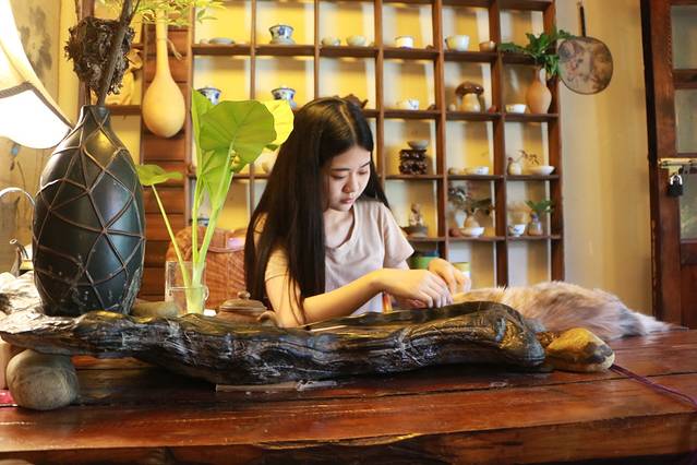 推荐一小店,名叫岁月院子。推荐理由有三:1.里面的服务员都是美女。2.空调打得足,给你足够的清凉。3.店里的小猫任你摆弄。4.装饰格调清新脱俗。