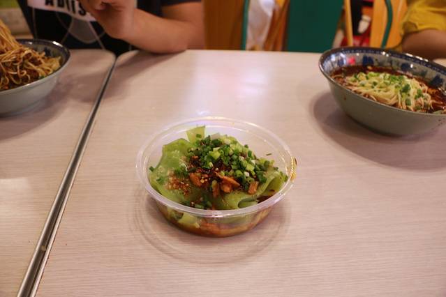 绿色凉皮,以蔬菜汁代替水和面,入口和普通凉皮没有什么很大区别,推荐指数:🌟🌟🌟