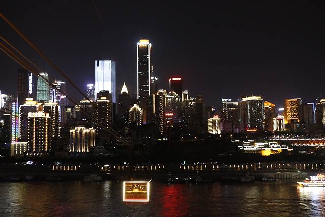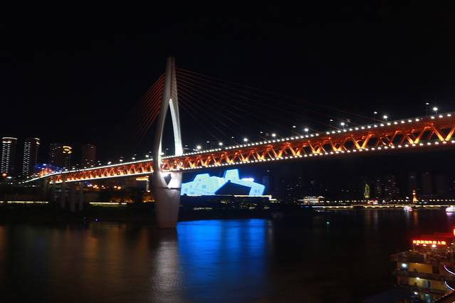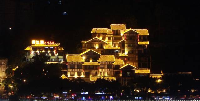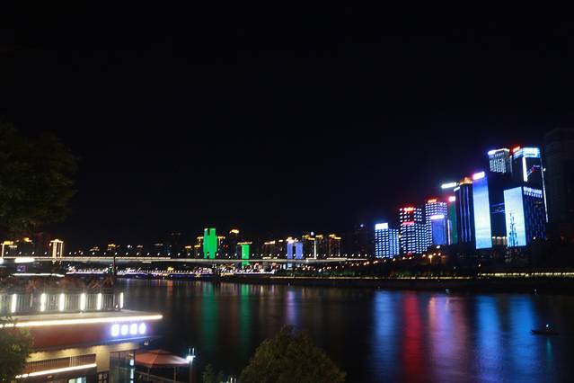 走出洪崖洞,来到了嘉陵江边,沿着江边闲逛,两岸的夜景还是不错的,那些或明或暗的灯光,倒映在江水里 ,过往的游船激起微波,将灯光一片片撕碎,碎片顺着江水远去。