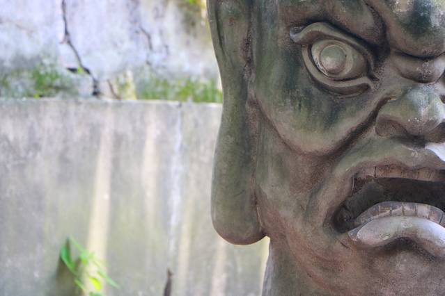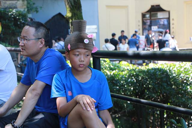 在石凳上坐着休息的时候,偶遇一个人灵气的小男孩,用一个帽子给我们变戏法地呆着,并对着我的镜头不断的做着鬼脸,真是可爱至极。