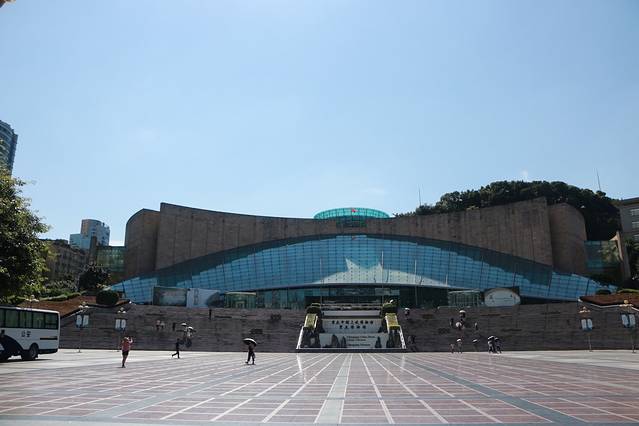 在大礼堂的对方,就是中国三峡博物馆,免费对大家开放,但是下午4点半以后,就不能进去了,所以要去玩的朋友们,请注意安排时间哦。我们去的时候已经4:20分,所以不能进去参观,实乃一大遗憾。