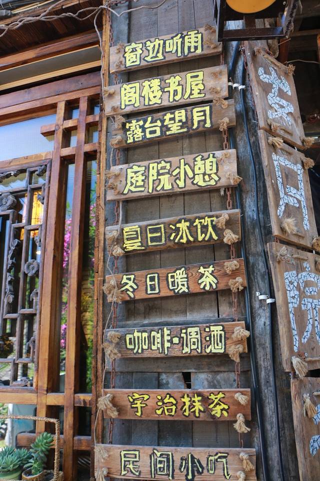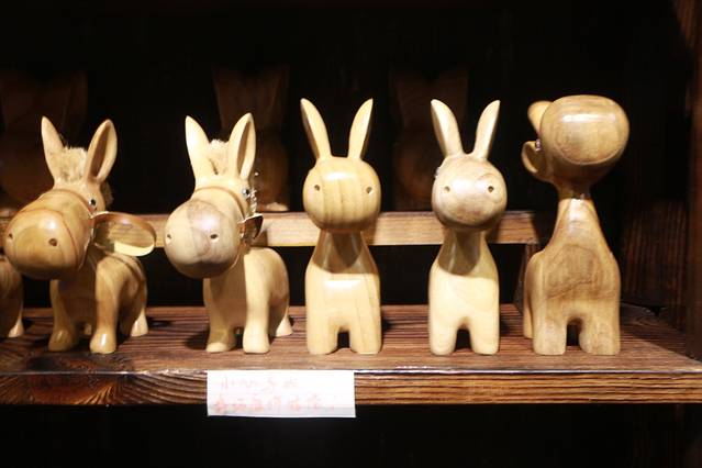 古镇里各种个样的饰品店,可爱的小木雕