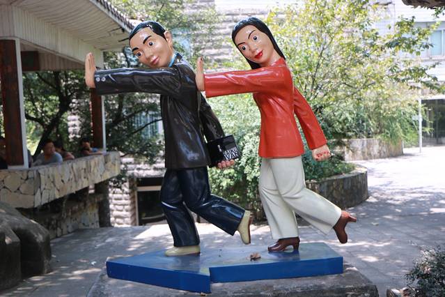 第四天,走,我们去川美。从小什字出发,在较场口转2号线,然后在杨家坪下车,打的过去10块钱。这里还要敲黑板提醒你们,千万千万要去坐2号线哦。在李子坝有轻轨穿房过,建议你们在较场口换乘,因为较场口是2号线的起始站,(下了较场口站往右走是列车前进的方向,)能抢到靠前车厢的位置,清清楚楚地感受轻轨穿墙,以及看起来很危险的S型路线。简直就和过山车一毛一样。