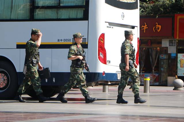 大礼堂广场上的兵哥哥。