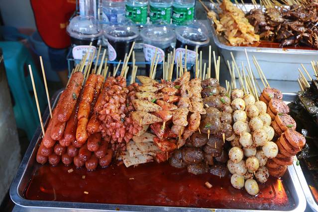 第二天睡了一个足足的懒觉,和另外四个小伙伴汇合,中午时分,我们步行至解放碑,去八一好吃街寻觅中饭。酸辣粉、肥肠粉、山城汤圆、 重庆 小面、烤串、冷串应有尽有。好又来,麦丽丝,简直就是吃货的天堂,只要你吃的下就行!现在想想都流口水,好吃的太多,只是胃太小!下面由我来做点评,当然,口味纯属一个南方妹纸的个人意见,如有不当,请根据您真实口味为准。