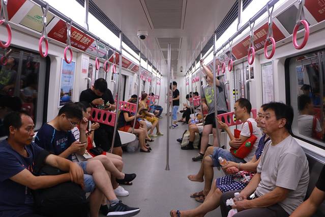 你看,粉色的车厢里全是一帮大男人,实在令人惊叹。