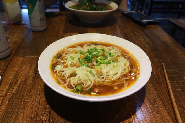 第二天睡到自然醒,拉开窗帘一看,千厮门大桥上已经人来车往。太阳爬得老高,新的一天开始。找了一家重庆小面,点了一份豌豆小面和豌豆粉,豌豆是油炸过的,咬一口松松脆脆,而面呢,爽口有劲道,再配上两瓶火锅标配—唯怡,简直完美。