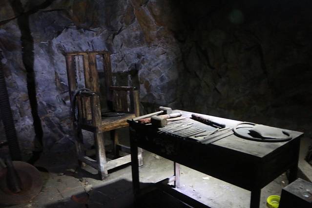 洞内很好地还原了当时的监狱、审讯室。看着各种各样的刑具,让人触目惊心。小萝卜头就在此地遇害的。
