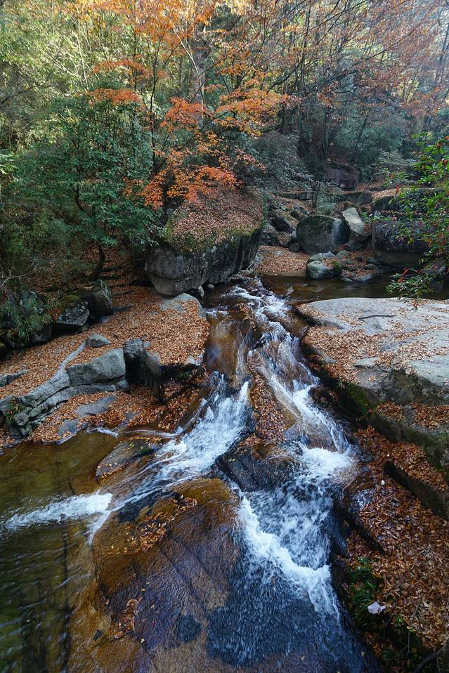 展现了花岗石中独特的滩-瀑-潭组合地貌,是观赏红叶瀑潭景观的胜地