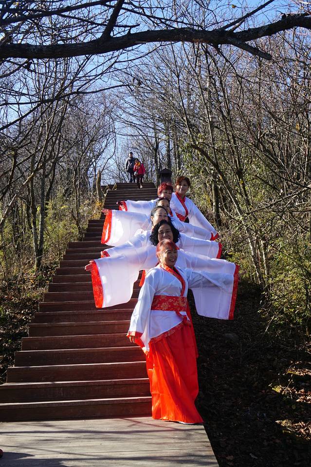 与刚下山正在照相的舞者会面