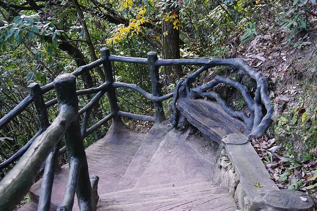 上山小道上看到的人性化设计,扶手栏杆逼真结识,时有小凳小椅供有人休息。