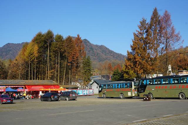红叶节期间,自驾车全部停在外面,进门换乘景区游览客车