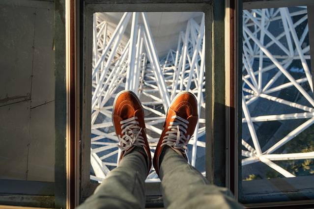 在塔的14层还有一处“彩蛋”:参观通道有一处的地面换成了完全透明的玻璃,站在上面可以直接看到塔底,透过这些钢铁结构仿佛也有一种穿越的感觉。