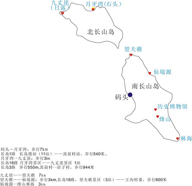 整理出来的简单长岛地图,景点什么的一目了然,场地这里,九丈崖和林海是很值得去的,尤其是林海,第一推荐。