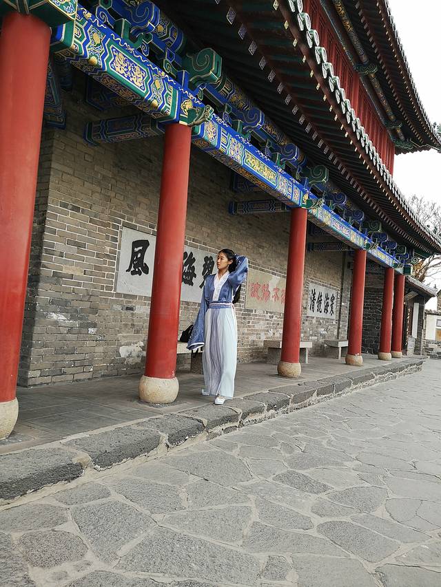 出岛后前往酒店放下行李,换了一身汉服才出门的,蓬莱阁古建筑群配上汉服,正正合适,这是我第一次穿汉服出门,给自己一个鼓励的赞。
