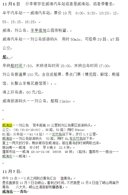 3、牟平汽车站——(大巴)——威海汽车站——(公交)——刘公岛旅游码头——(船)——刘公岛