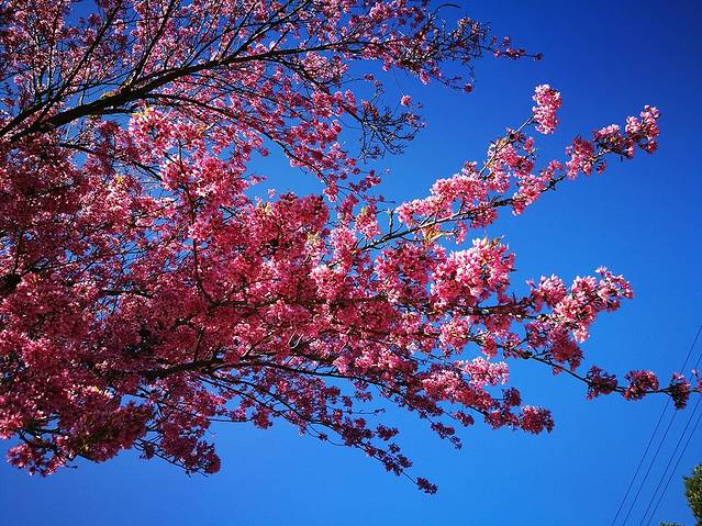 一株株粉色的冬樱花开满了山谷