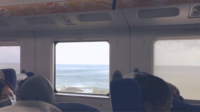 瑞芳到花莲大概两个小时听听歌吃吃东西其实很快就过去了,但干万不要睡觉因为有一段路会沿海走真的超级漂亮,买票尽量买到靠左边的座位!!
