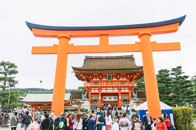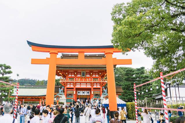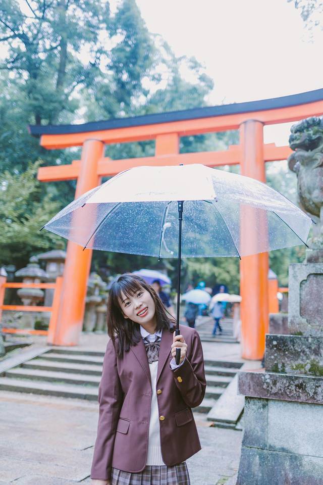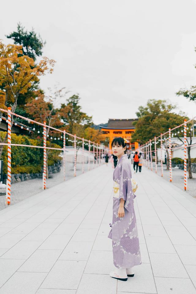 京都最火的就是伏见稻荷大社了吧,后山的千本鸟居是必打卡点。这里是穿和服最多的人的地方,想要显得特别,你就必须要选一件特别的和服,避开那些花花绿绿的哦~