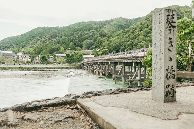 【交通】 京都站(嵯峨野线,15min,240日元)-嵯峨岚山 。出门右转到嵯峨小火车站(买往票),9-17每小时一班),步行浏览渡月桥,天龙寺,嵯峨竹林。至小火车岚山站上车,坐小火车,到小火车龟冈站下车。步行15min至JR马崛站,返回京都站,去大阪 。