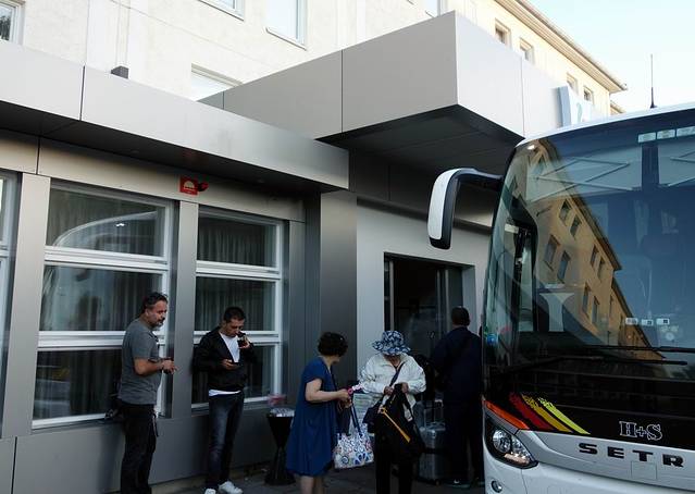 南泰利耶城市公园品质酒店位于瑞典斯德哥尔摩南泰利耶。图为导游在给我们办理入住手续。