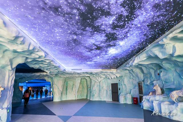冰山北极馆,璀璨的星空下一片白雪皑皑。还没走进场馆看到那些动物们,就已经把人带到了北极那纯净的冰雪王国。