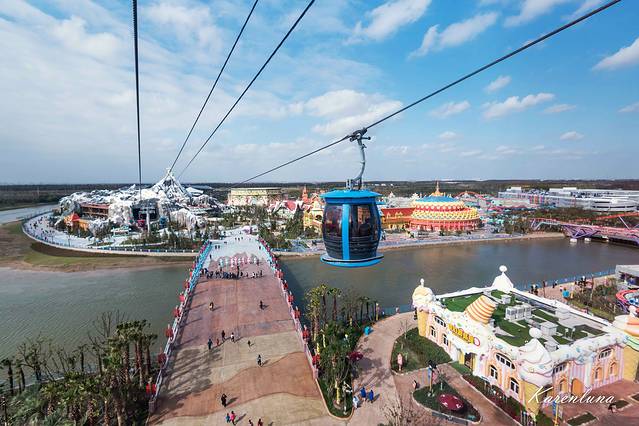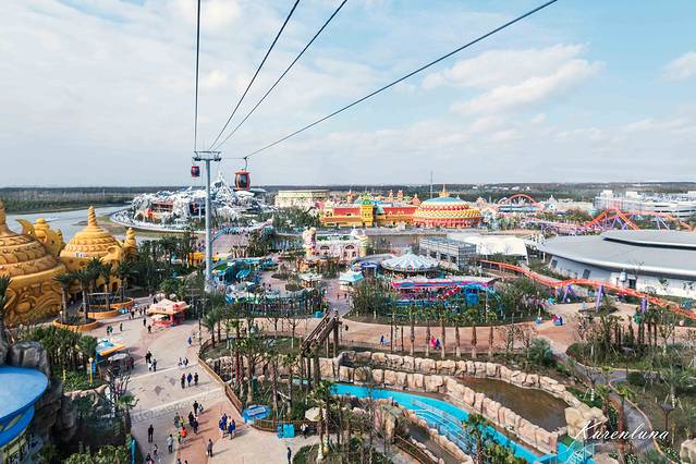 从海底世界馆出来,园区里北边的部分就算游览的差不多了,返回到南区除了可以跨国南极桥走回去外,还可以乘坐mini的时空缆车。
