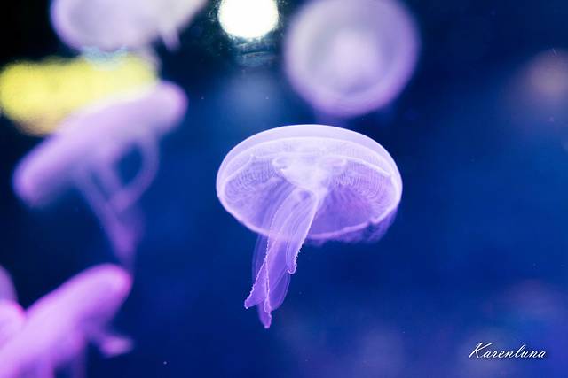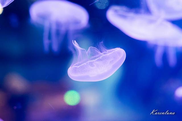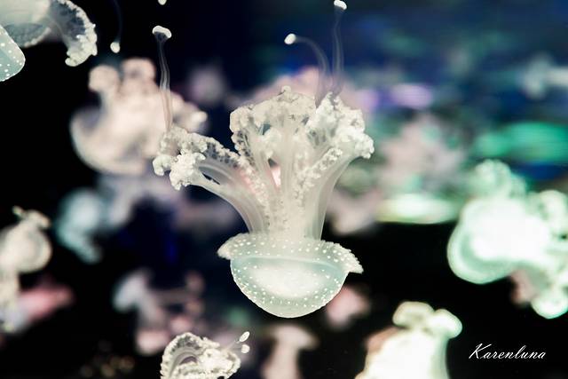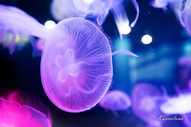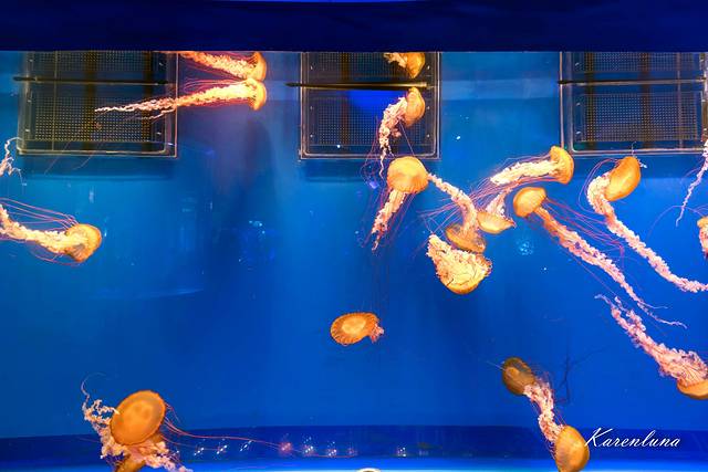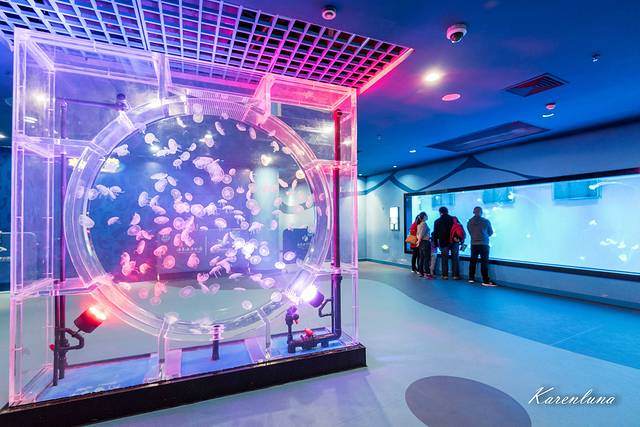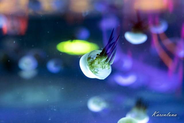 各种大小、各种形状的水母,随着灯光的变化,变换着自己的颜色,就像是在海中咕叽咕叽的小精灵,魔幻奇特有那么可爱。