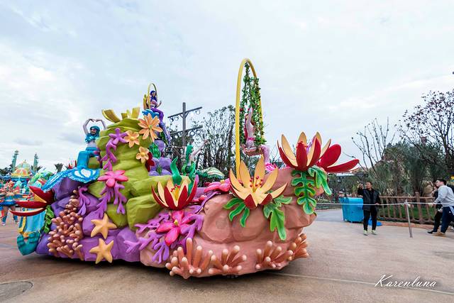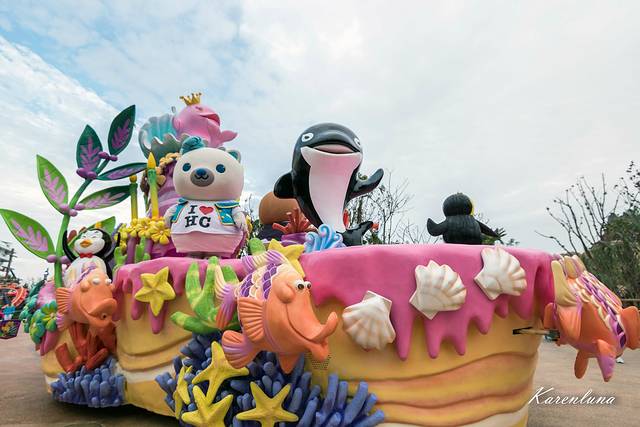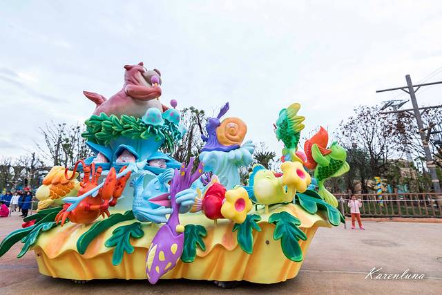 不同于其他的海洋馆,上海海昌海洋公园在每天中午和下午都会各有一场精彩热闹的海洋梦幻花车巡游。一辆辆由各种海洋元素组合而成的炫彩花车,海底奇域出发,穿过海洋部落后,再次回到起始点。几乎绕了海洋公园的北部广场一圈。