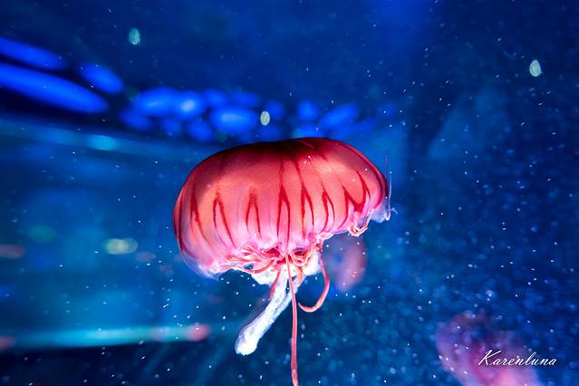 水母的种类真是多到数不胜数,有短须的,有长触角的,有斑点伞装的,还有要求小灯泡状一直使劲游的,有好多种类都是我第一次见。