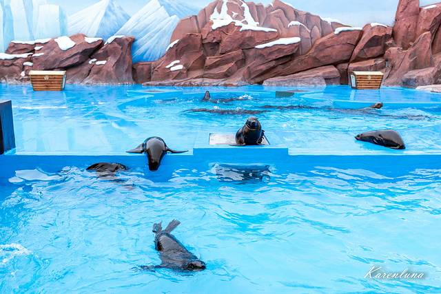 离开天幕影院,以为今天的海洋公园一日游就这么结束了,结果一出门便看到了海兽探秘馆。走进其中,成群的海狮在水面上,也是蛮壮观的。