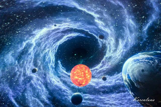 在海昌海洋公园里,这个国内唯一的360度全息海洋主题的球幕影院每天都会上演很多次的《时空之海》。以宇宙的时间轴为主线,开启了宇宙与生命漫长的演变过程,向游客们讲述了地球百万年来历经的沧桑与美好。而影片里经常出现的无时无刻都在运行的时钟,却与公园大门喷泉后的时钟相呼应。
