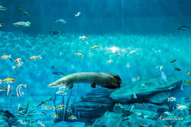 而这里除了鲨鱼外,还有另外一种超级大的鱼——巨骨舌鱼。记得上次看到这庞然大物还是一年多前在日本的大阪海游馆里,对这种长得很像金龙鱼的鱼尤为记忆犹新。没想到一年后的今天,在上海海昌海洋公园再次见到。