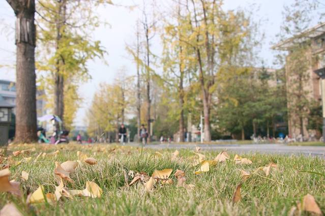 因为一个偶然的机会去了西南财经大学的柳林校区,可能正是因为比较偏僻,校园更加原生态,像是花园一样。在学校的入口处就是一条林荫大道,在光华大学的牌坊后面就是银杏大道,左边是一大块绿油油的草坪,右边是教学楼,位置特别好,周末去,游玩的居民和学生都非常多的,像是社区公园一样,很热闹的感觉。