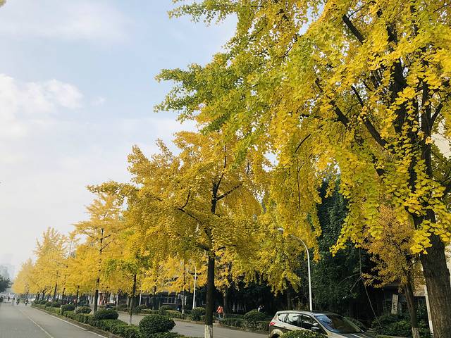 四川大学望江校区,一个林木葱郁的老校区,行走在校园到处都是绿树成阴,就像是一座花园。在东区体育馆前一直到小北门都是有很多银杏树,尤其是文化大道,两边种着的银杏树,慢慢的黄了,分外美丽。