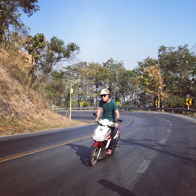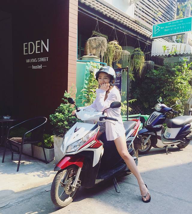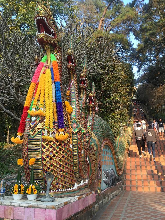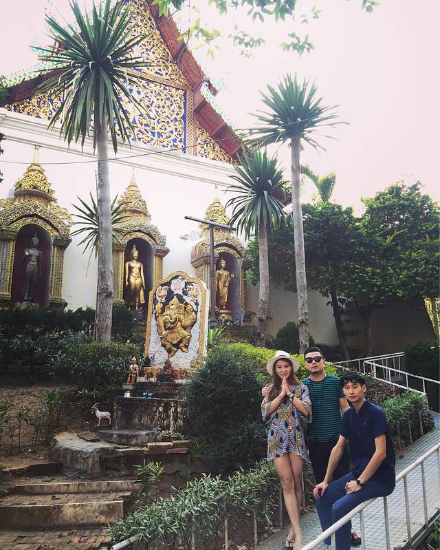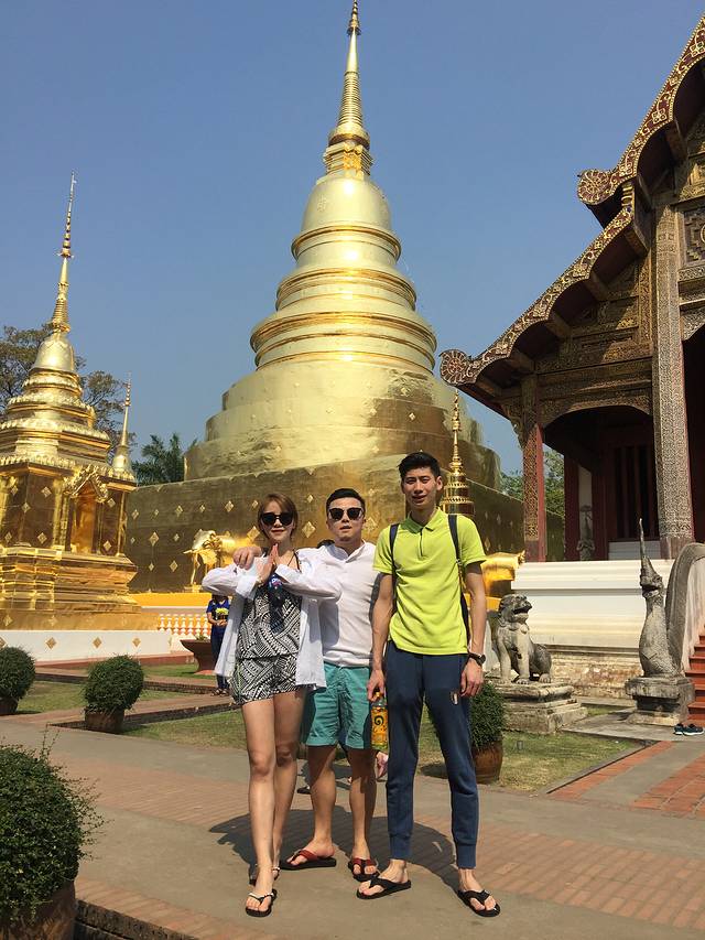 租了一台摩托 上山乱逛因为有男生在,第一件事就是租了两辆摩托,需要护照办理手续,第一天就逛了逛清迈古城,去了附近一个双龙寺