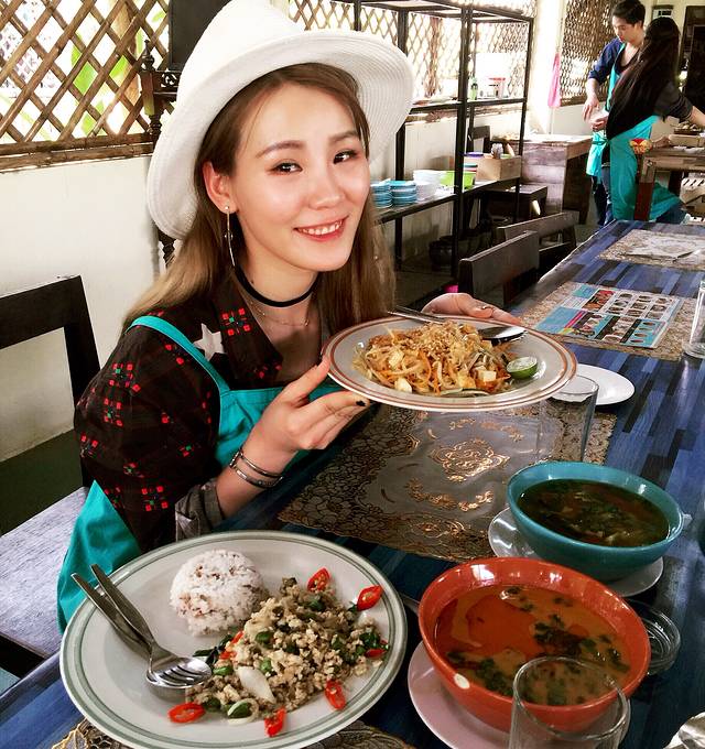 报了一个泰菜速成班,自己做出来还蛮好吃哦。报团去的都是自己去玩然后一起住的附近报的团 早上的时候会有一台车来你住的地方接你 。也最多就十人左右