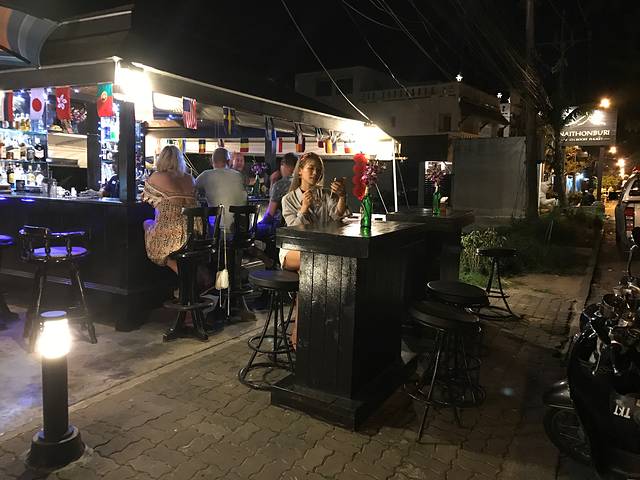 去一家格调稍微高点的餐厅吃了晚饭之后 晚上去了一家酒吧 体验了当地泡吧的感觉 哈哈 进门保安是看你手上有没有被盖章。..不过里面就没有长沙玩的洋气了,不过,酒是相当便宜啦,也绝对不是假酒。哈哈哈