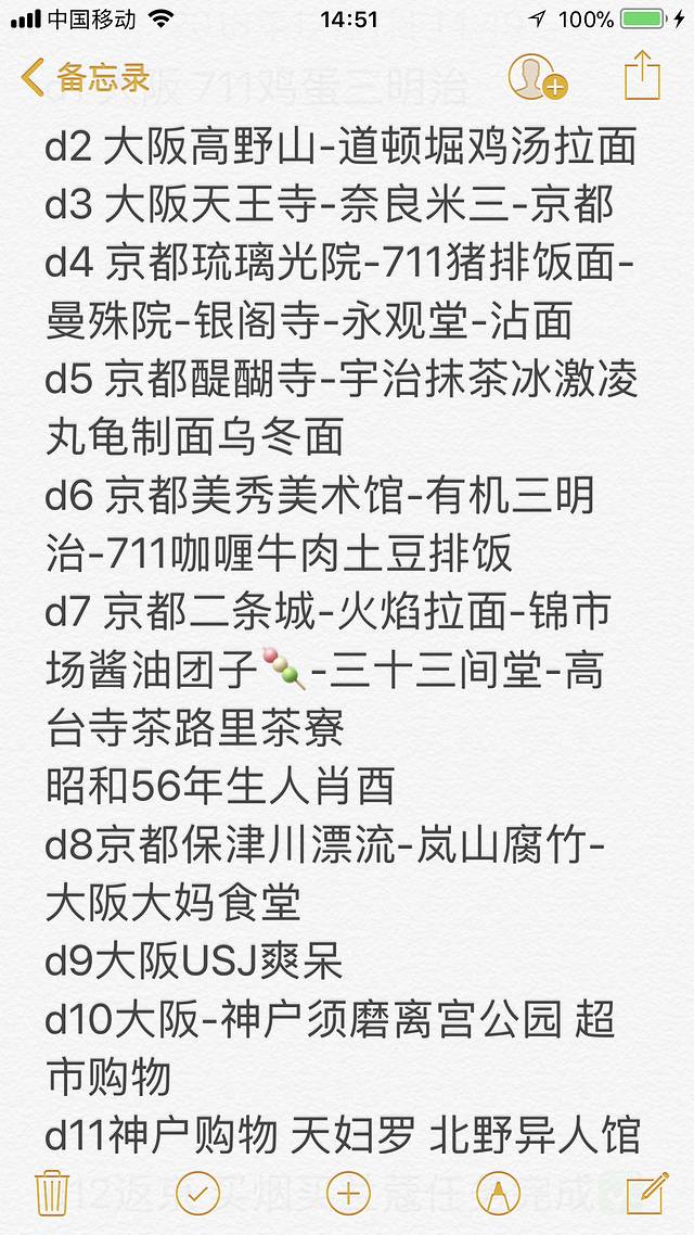 在独自旅行第十天的晚上,在神户的酒店里,我用手机备忘录回顾了这几天的大致行程。