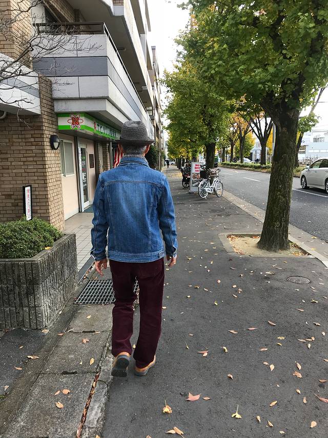 路上遇到这位很潮的老先生,只见他走路自带节奏,还不时用手接风吹下的落叶,好不惬意。