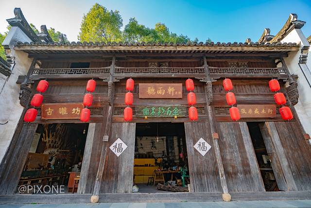 这里的建筑以龙游商帮为主题,不是商宅就是官邸,和皖南、婺源的古村落是不一样的味道。搬迁复建到此的民居中,包括了龚氏民居、余氏民居、滋树堂、聚星堂、高冈起凤厅、巫氏厅、劳氏民居、灵山花厅、翊秀亭、邵氏小厅和汪氏民居等34幢古建筑,其中还保留了一些文物。这些建筑是龙游古代劳动人民智慧和劳动的结晶,也是龙游商帮历史的见证。你可以在古商业街上走走逛逛,也可以走进民居内细细欣赏。由于这里没有人居住,游人也不多,拍建筑的照片很合适。