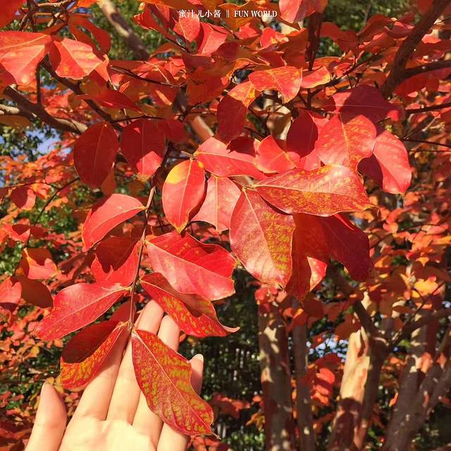 而在我眼中,秋天是红色带着金,带着绿,也带着蓝,她像霓虹,不经意间的一次侧目,就可以感受到色彩的冲击。