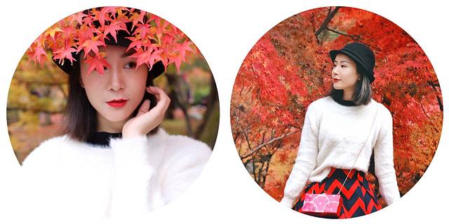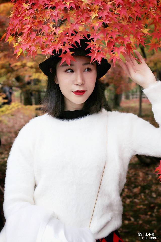 去不同寺庙要根据不同的特点来准备衣服,东福寺的枫树品种为 日本 枫,比较低矮,所以东福寺特别适合人像与枫叶的合影,以枫叶为主要的衬托物,所以服装建议选择片色的衣服,更能凸显枫叶的色彩。蜜酱去东福寺穿的是白色毛衣。白色永远是最百搭的颜色,无论寺里的枫叶是红是黄,在白色面前都极易显色。另外白色也会给人视觉纯净的感觉。如果觉得白色毛衣太单调,可以再搭配一顶帽子噢~