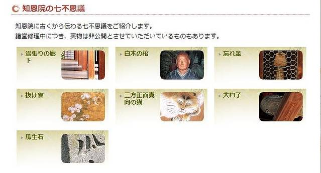 其实,蜜酱和闺蜜诗苑并没有计划来知恩院,只是当天到达 京都 时,看天色尚早,便去住宅附近溜溜弯,却不曾想无意中走到了知恩院。起初我们对它也是一无所知,只看到好大的山门,应该是个不错的古刹吧,就踱步往前了。于是这知恩院的七大奇观,我们是一个也没注意看,颇有些不识 庐山 真面目的意味。下图附上知恩院的七大不可思议之物,之后要去知恩院的朋友,请代蜜酱多看两眼吧