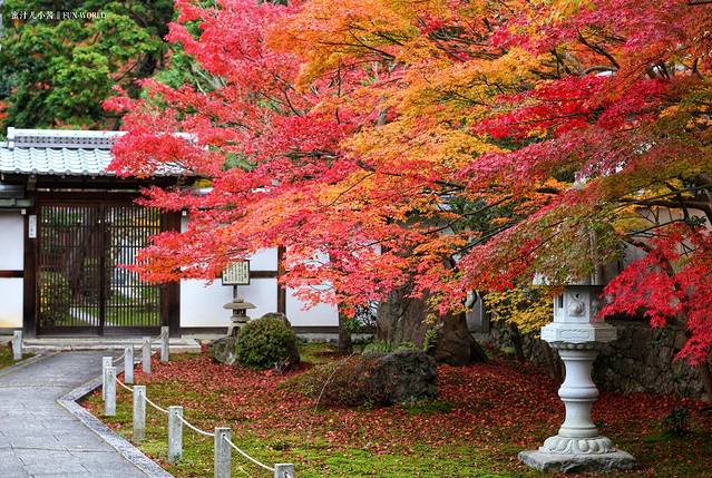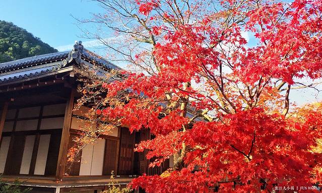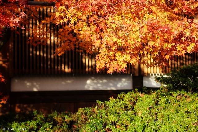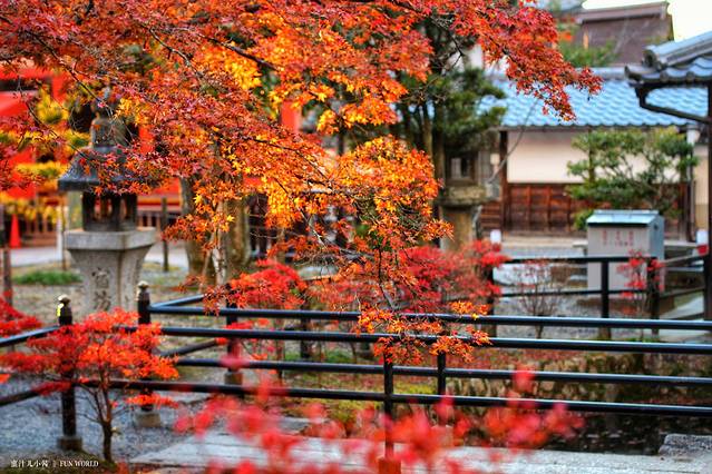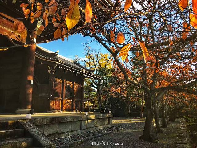 进入仁王门的左手边,有一处景致非常不错(进入仁王门后往左侧方向走,下几步台阶便是)。这里日式建筑搭配色彩由金黄过度到鲜红的枫叶,也是很出片的。此处没有什么人,难得的静谧之地。