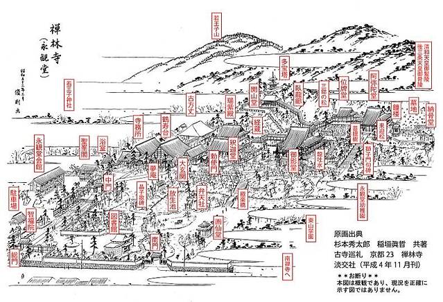 上图是永观堂的境内概览图,看起来庙宇非常多是吗?不过观夜枫有固定的线路,部分庙宇在夜间是不开放的,另外,赏枫的人多有一个好处就是不会迷路,所以放心地走吧 ,哈哈 ~ ^ . ^ ~