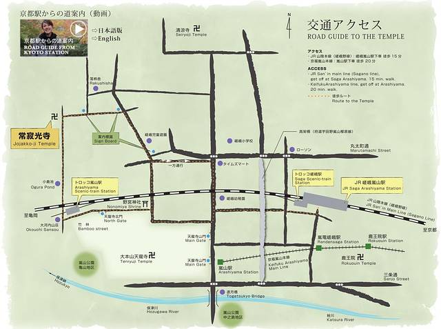 常寂光寺位于 岚山 风景区,所以密集着许多的景点。可以预备多一点时间去往 岚山 ,好好把这里的秋色看个遍。下图是常寂光寺周围的地图,大家可以根据自己的喜好前往。