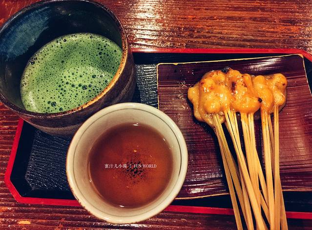 沿下山的路往前走,天色渐黑,饥肠辘辘,这时发现了一家日式小吃店,藏于一个偌大的院落内,建筑和摆设都非常日式,小食味道很可口。可以看得出这里的生意很不错,好多 日本 当地人也在这里排队享用美食。下图便是这家店啦,逛完 岚山 ,坐在充满 日本 风情的小屋内歇歇脚,喝杯抹茶吃吃小食,体验传统的日式风味也是很不错的体验呢。可惜蜜酱忘记了店名,Sorry ,希望朋友们能好运的找到。