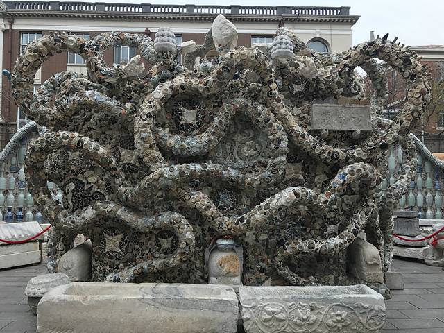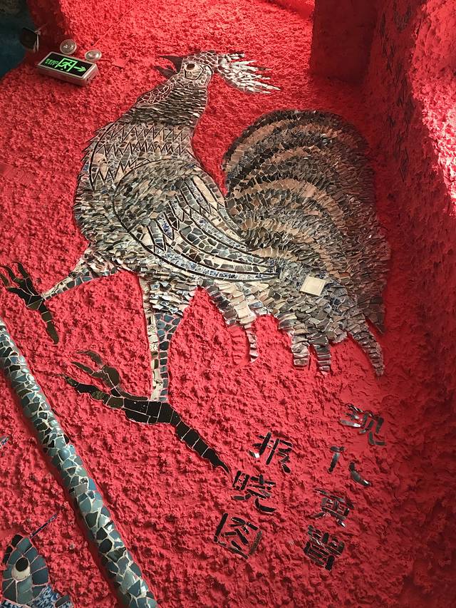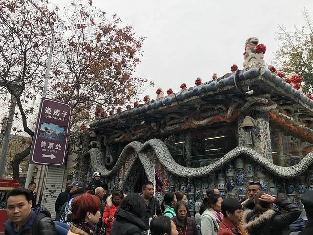 瓷房子上镶嵌的7亿多块瓷片涵盖了各个历史时期,有晋代青瓷,唐三彩,宋代钧瓷、龙泉瓷,元明青花,清代纷彩等,几乎官窑、民窑的所有门类都可以在墙上找到,而且都用水泥内部浇注,并用大理石胶粘连固定成为建筑的一部分。守在瓷房子地道入口的是一对非常独特的石头门墩,它要比常见的门墩高出很多,最上面有一对小狮子,墩的四面石壁上也都雕刻着各不相同的图案,有人物、树木,有花草、山水,分别组成一个个的场景。一条长768米、宽0.8米的巨型瓷龙盘旋在“瓷房子”屋顶。