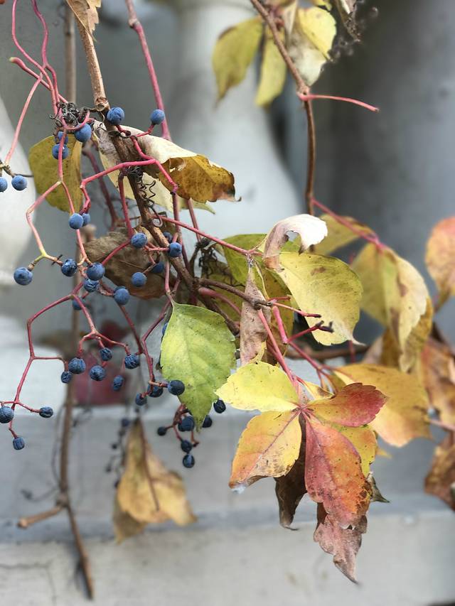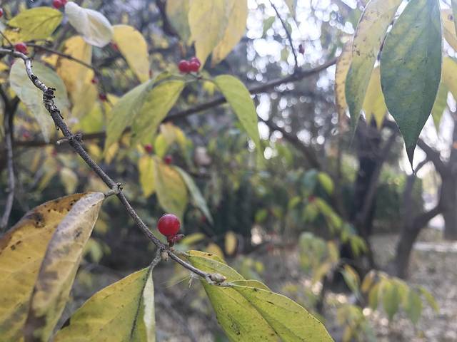 玉渊潭公园附近,银杏已经掉落了很多,因为在马路旁边,灰尘很大,掉落的银杏叶上都沾上了灰尘